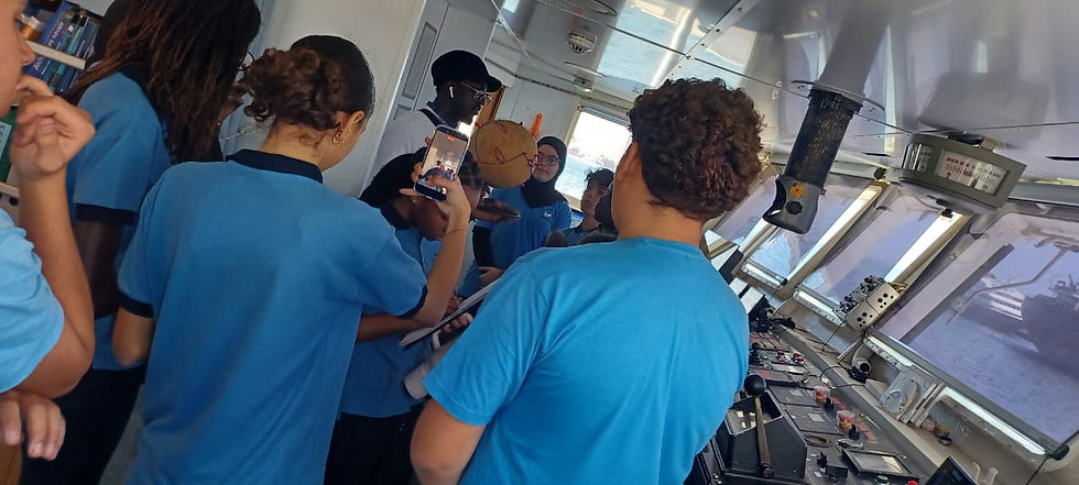 De 10h à 11h, les élèves ont découvert les équipements du navire et les solutions mises en place pour recycler les déchets plastiques et protéger l’environnement. Très intéressés, ils ont posé de nombreuses questions à l’équipage afin de mieux comprendre le fonctionnement des machines et les actions menées dans différents pays.